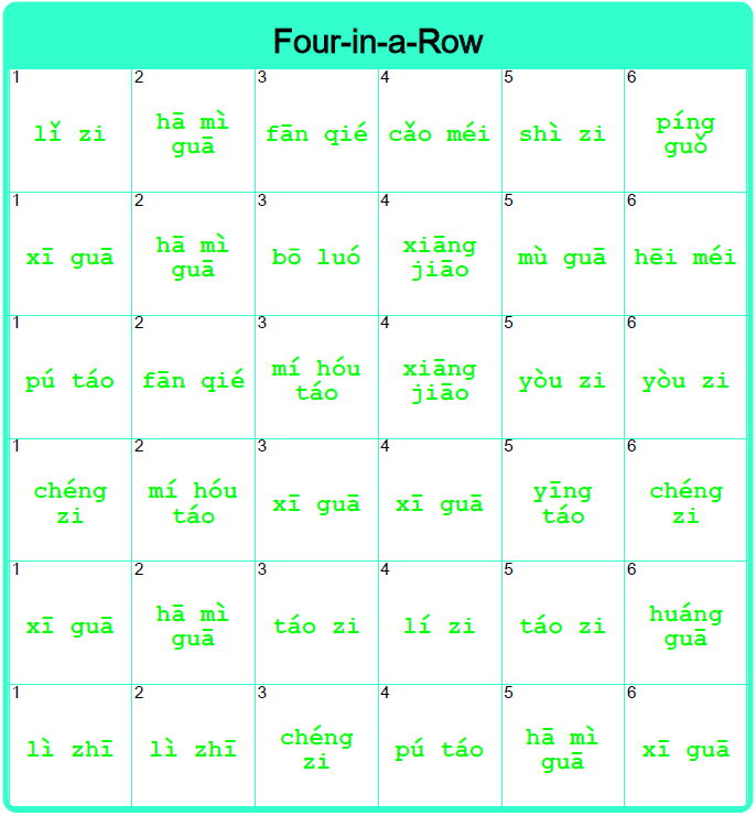 Four-in-a-row word game is an engaging way to reinforce and expand Chinese word vocabulary in the classroom. It can also be used at home for a fun homework activity.