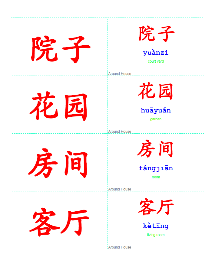 This tool allows you to create nameplate-like flashcards with Chinese and optional pictures on one side and English and Pinyin on the other side. You can fold along each of the three folding lines and glue the two bottom folds of the nameplate together to form the bottom of the nameplate. The students can put the Chinese word nameplates on their desk and use them to learn Chinese characters and words.